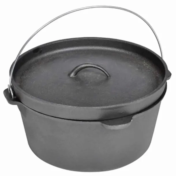 Kociołek o pojemności 8.8 l, oraz wewnętrznej średnicy 29.5 cm. Model świetny dla początkujących i zaawansowanych. Można w nim przyrządzać pysze zapiekanki, gulasz czy pieczeń.Mały kociołek, dostaną państwo w komplecie z futerałem, pokrywką z wygiętymi krawędziami, przyrządem do podnoszenia pokrywki oraz stojakiem. Futerał chroni przed zabrudzeniami w czasie transportu. Kociołek jest idealny do gotowania, pieczenia, smażenia i do użycia na biwak.